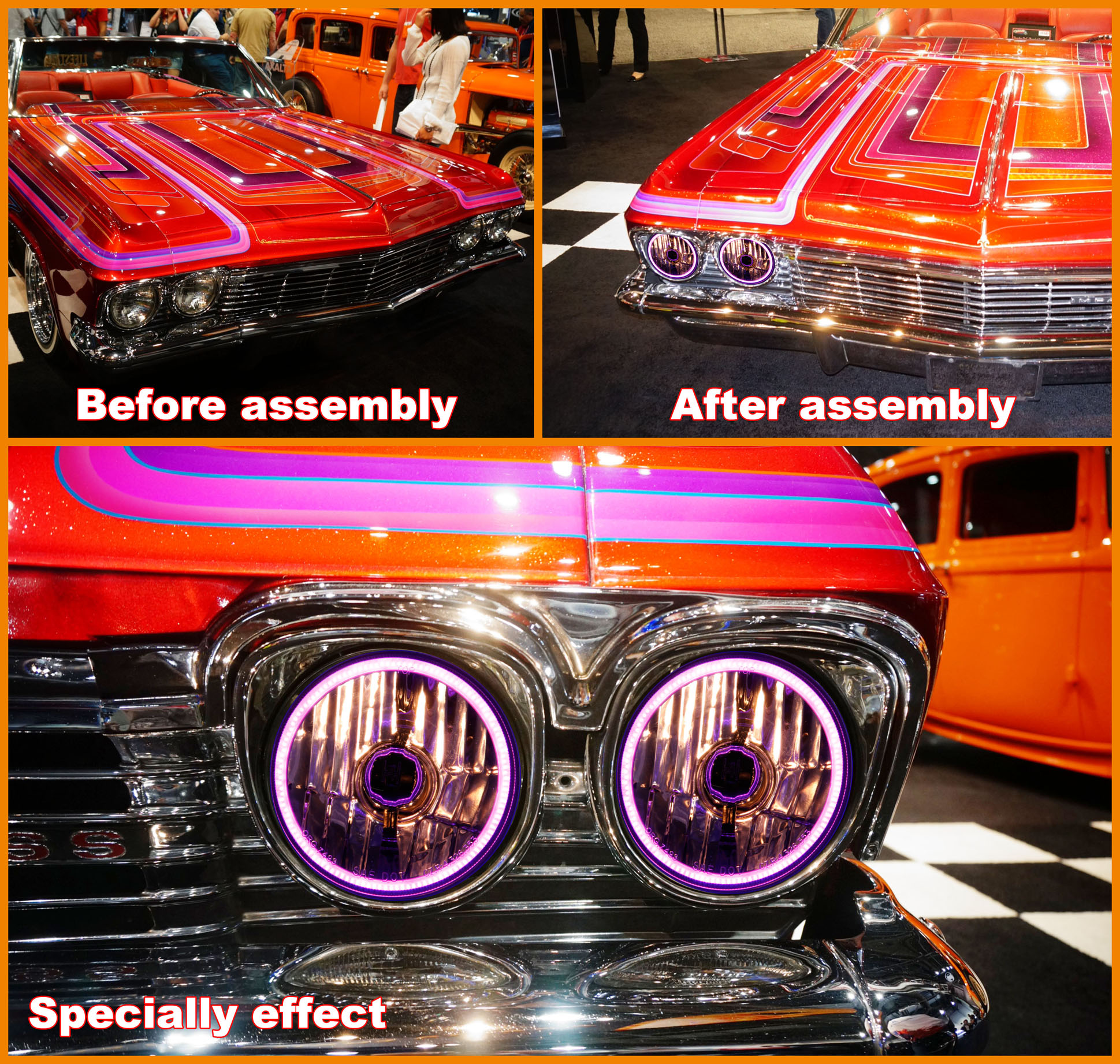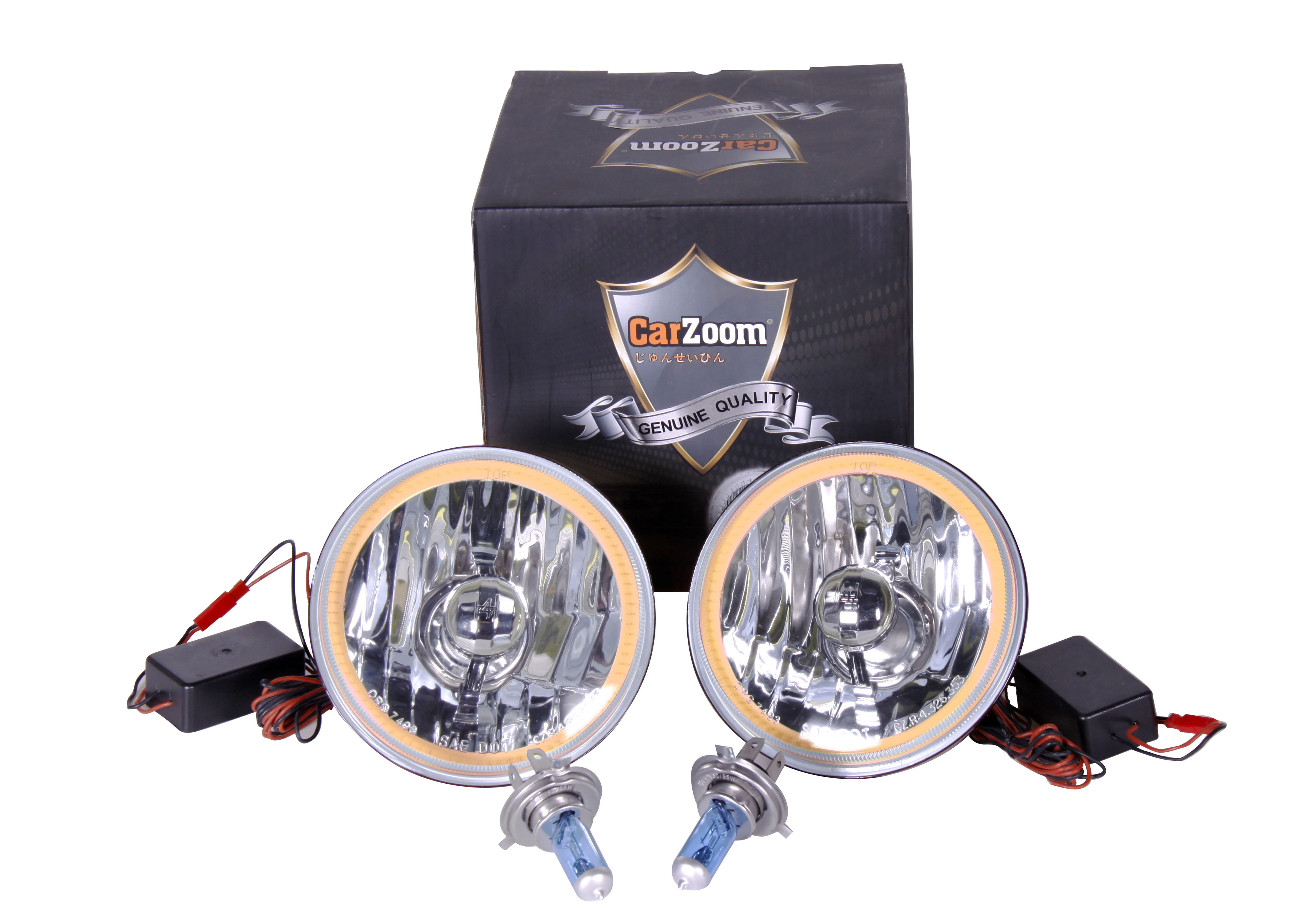 CARZOOM CZ-5R005PU-L Brown 5-3/4" Round Metal Stock H4 Halogen Headlight with Reflector - Pair (Low Beam with Purple COB Ring)
