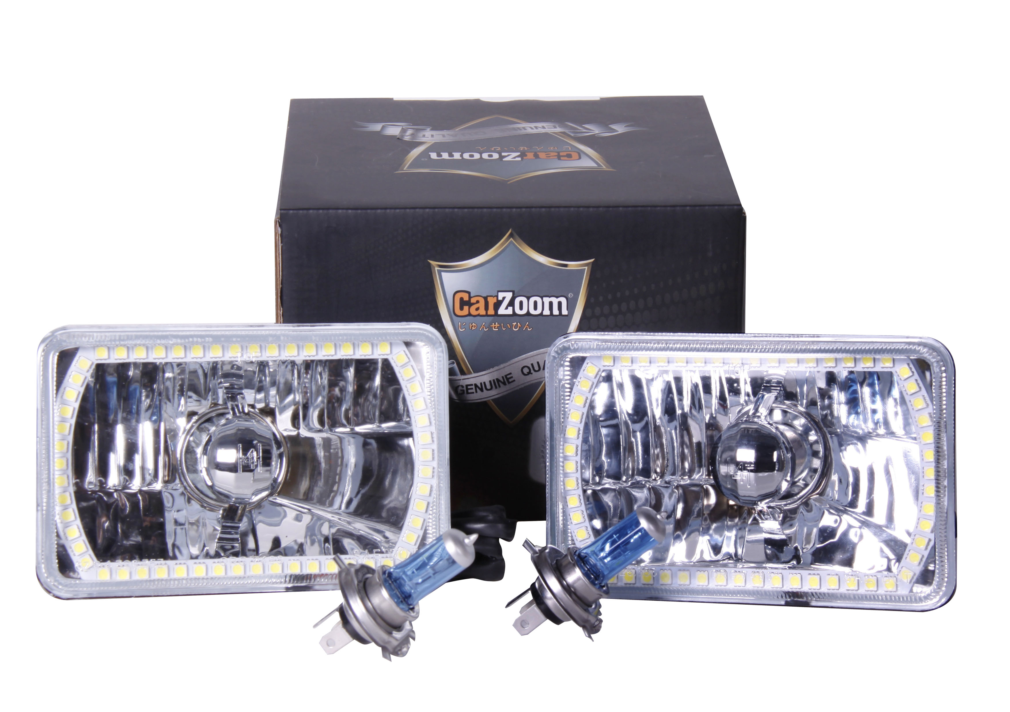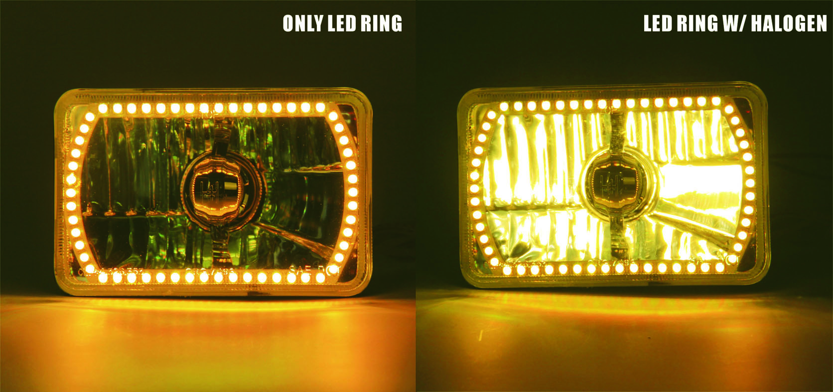 CARZOOM CZ-5S606A Brown 4" x 6" Square Metal Stock H4 Halogen Headlight with Reflector - Pair (Amber SMD Ring)