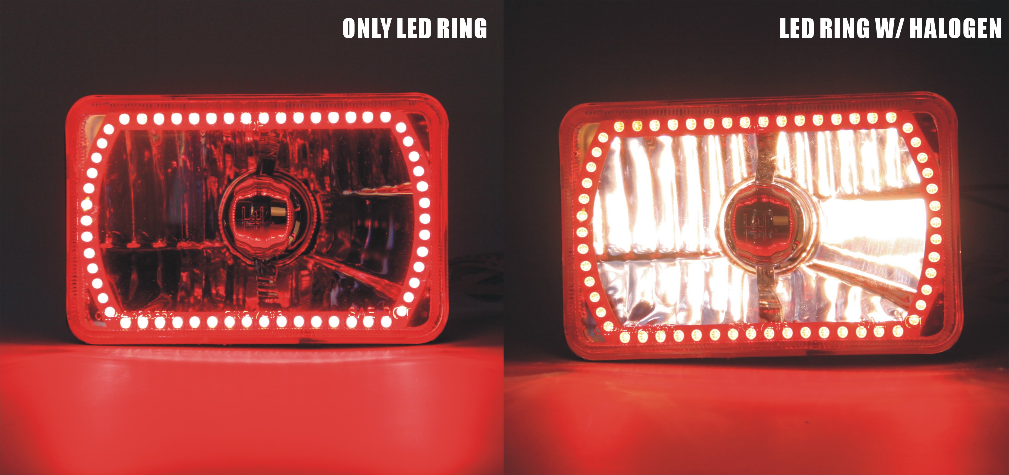 CARZOOM CZ-5S606R Brown 4" x 6" Square Metal Stock H4 Halogen Headlight with Reflector - Pair (Red SMD Ring)