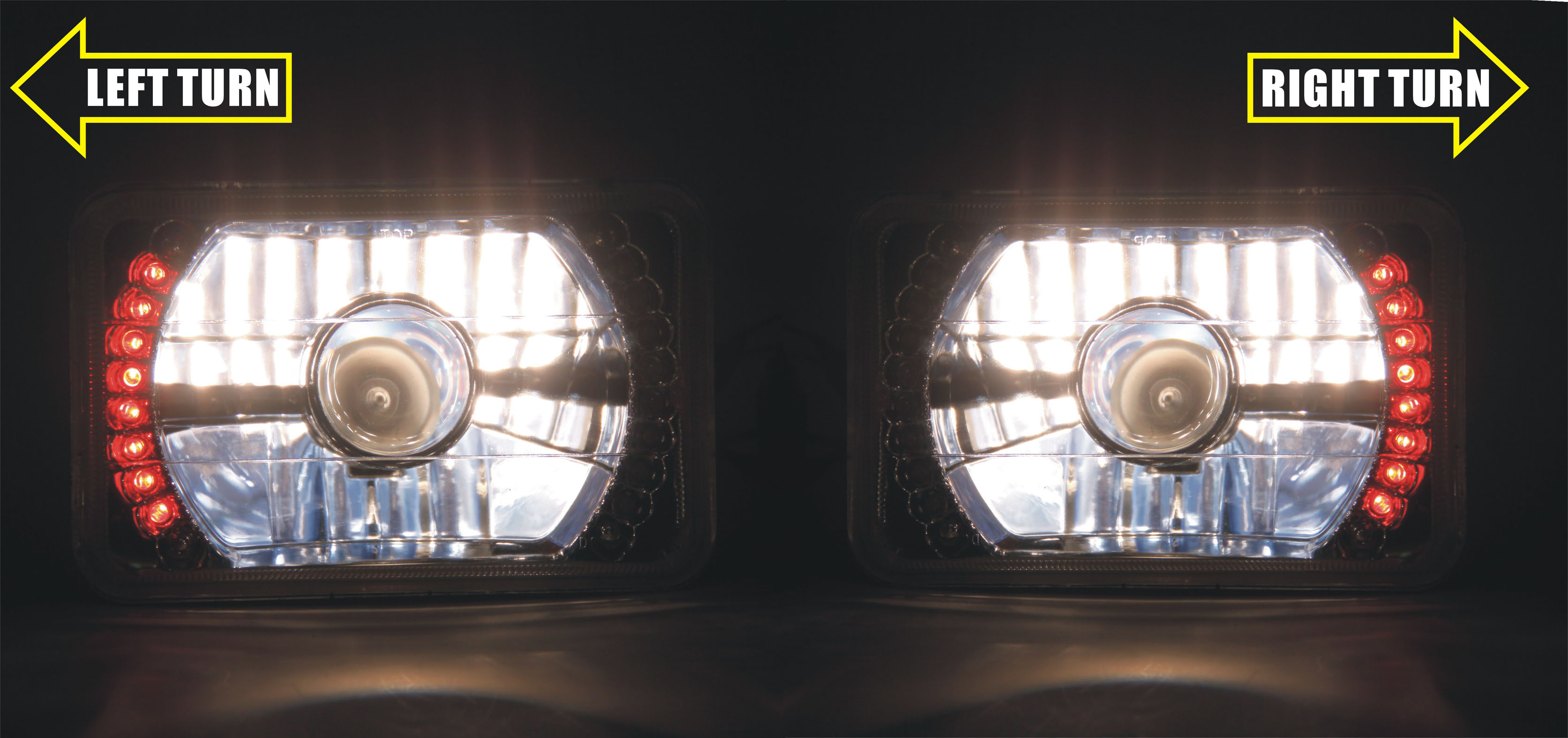 CARZOOM CZ-5S626R Black 4" x 6" Round Plastic BMC H4 Halogen Headlight with Projector - Pair (Red LED Ring)
