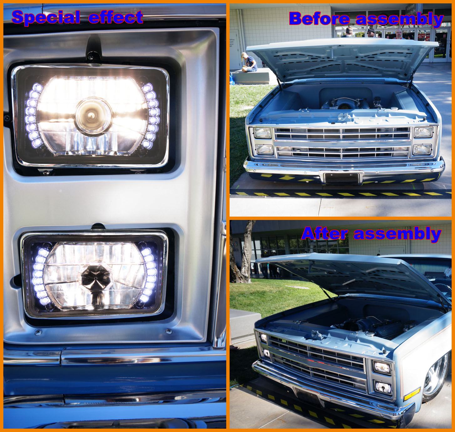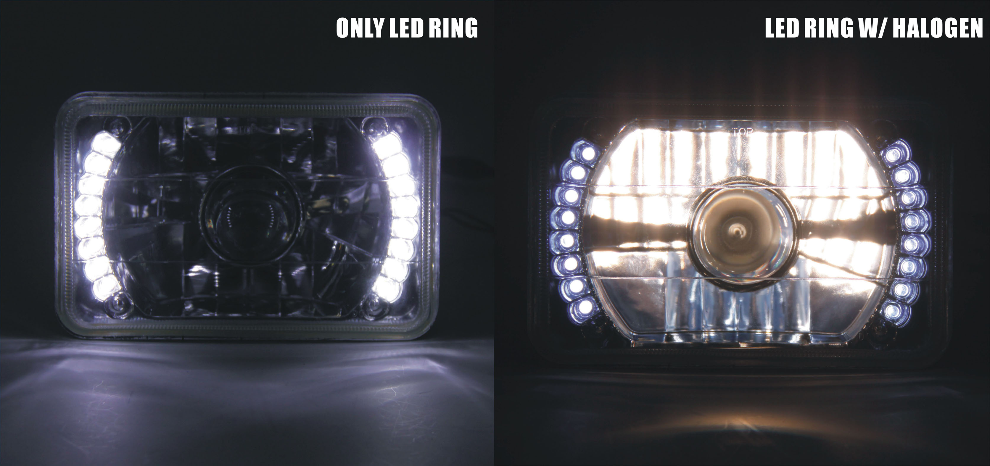 CARZOOM CZ-5S626W Black 4" x 6" Round Plastic BMC H4 Halogen Headlight with Projector - Pair (White LED Ring)