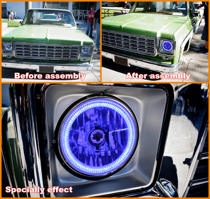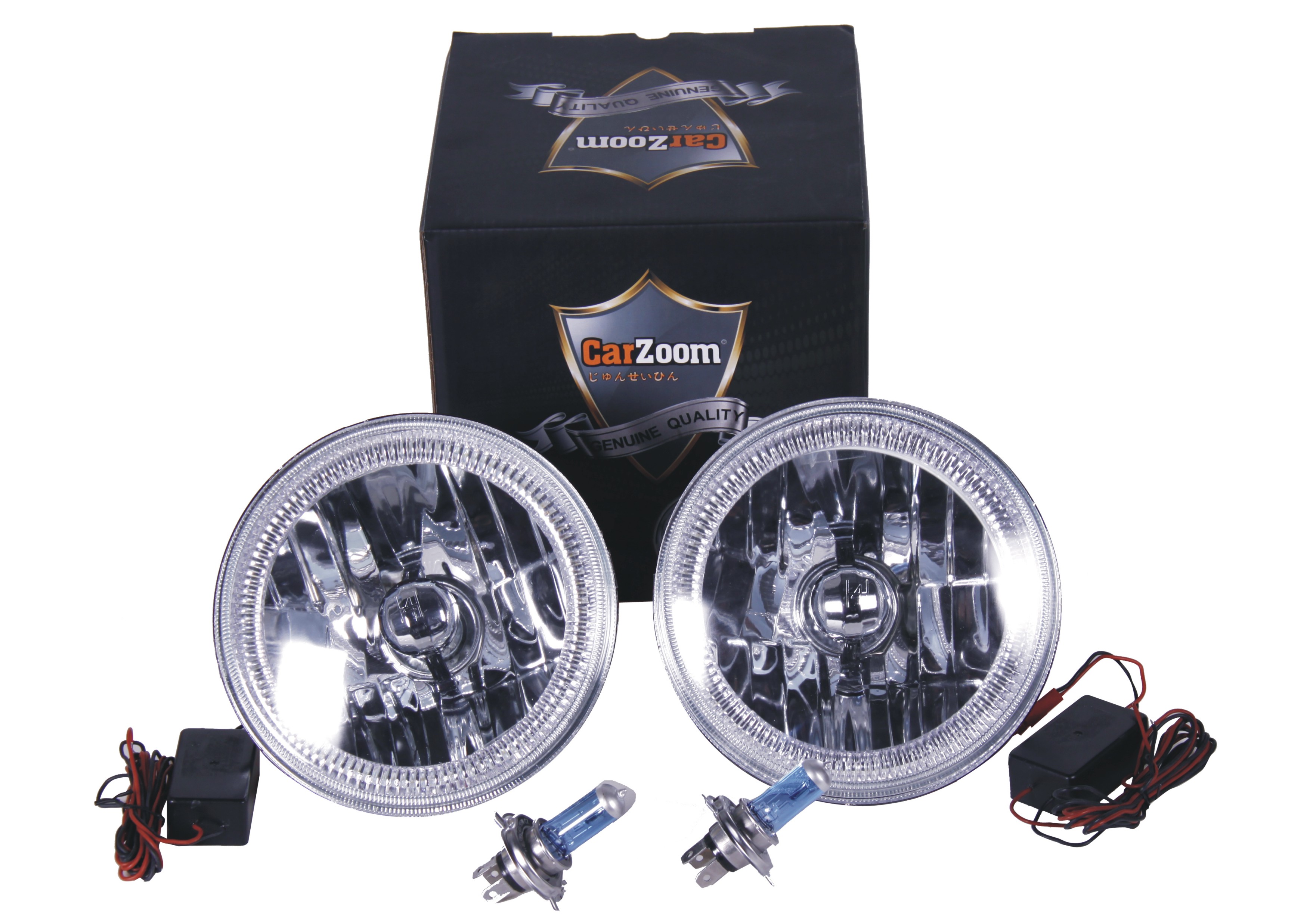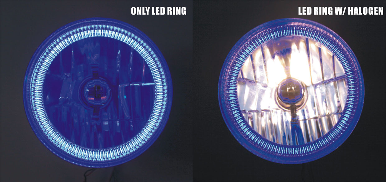 CARZOOM CZ-7R200B Brown 7" Round Metal Stock H4 Halogen Headlight with Reflector - Pair (Blue COB Ring)