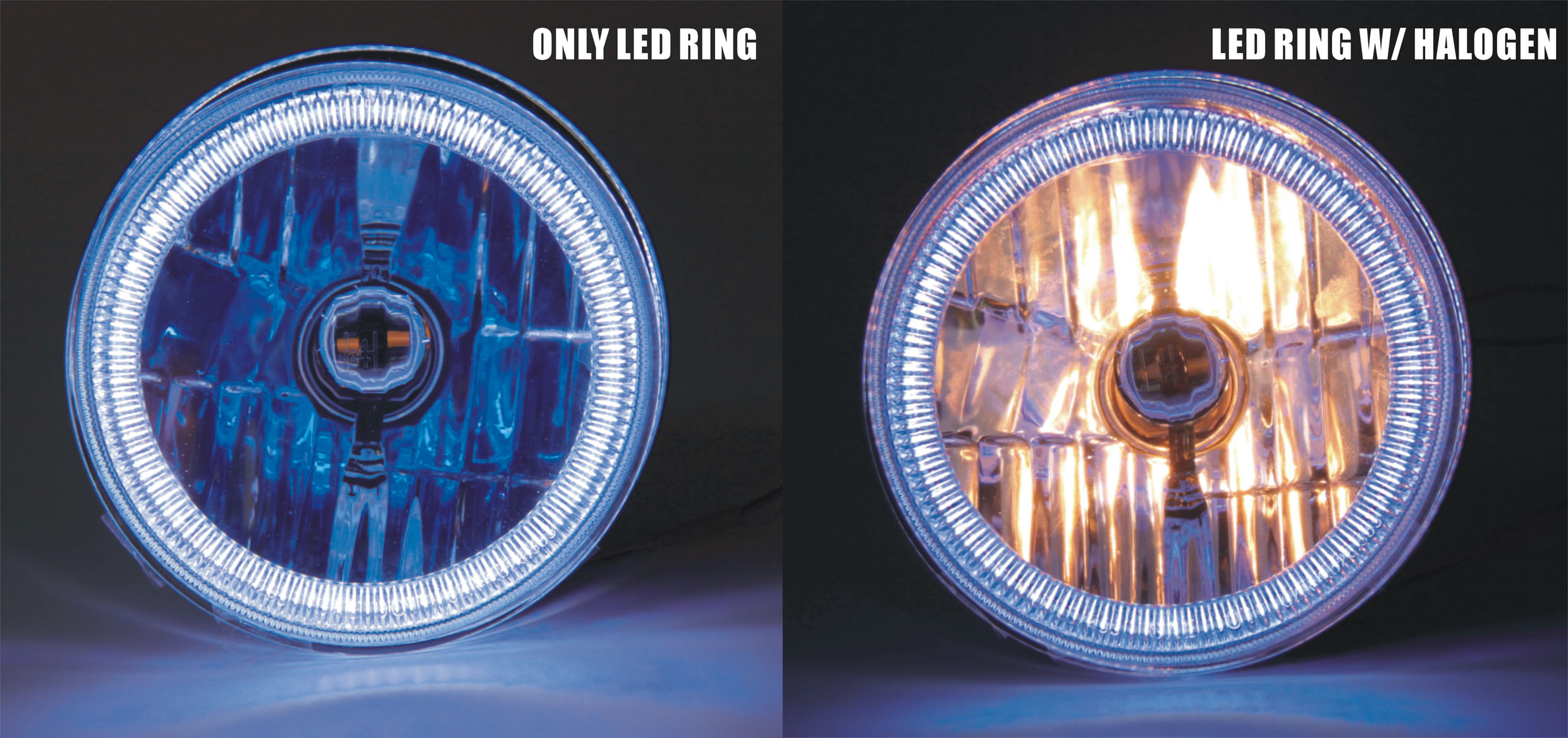 CARZOOM CZ-7R200W Brown 7" Round Metal Stock H4 Halogen Headlight with Reflector - Pair (White COB Ring)
