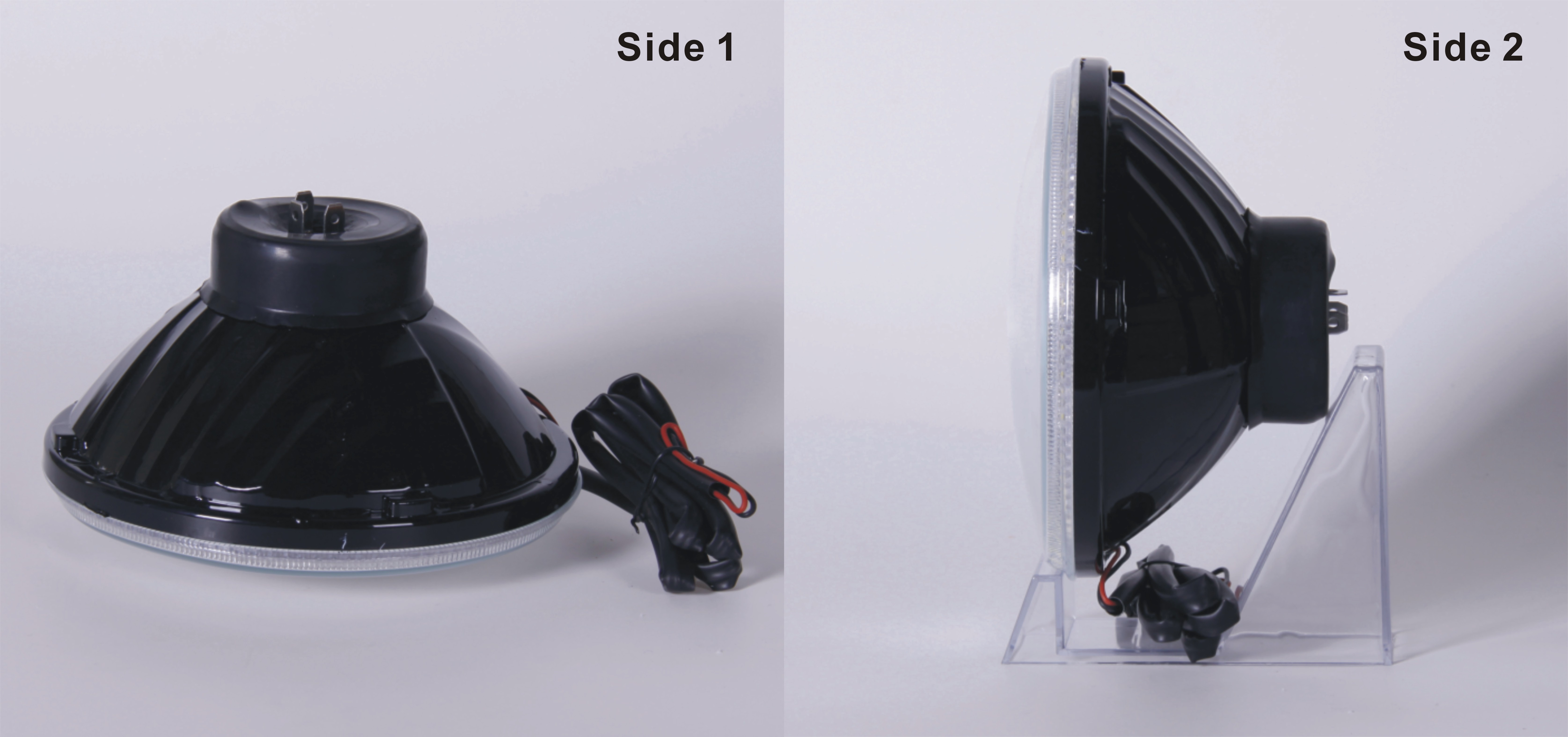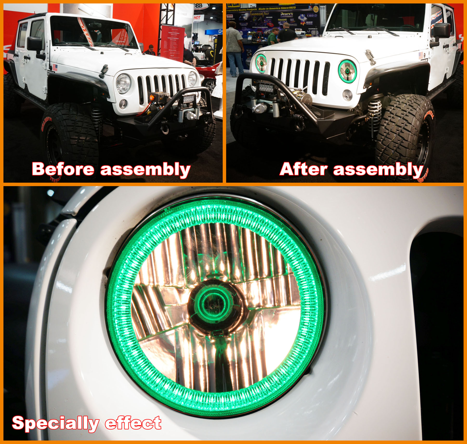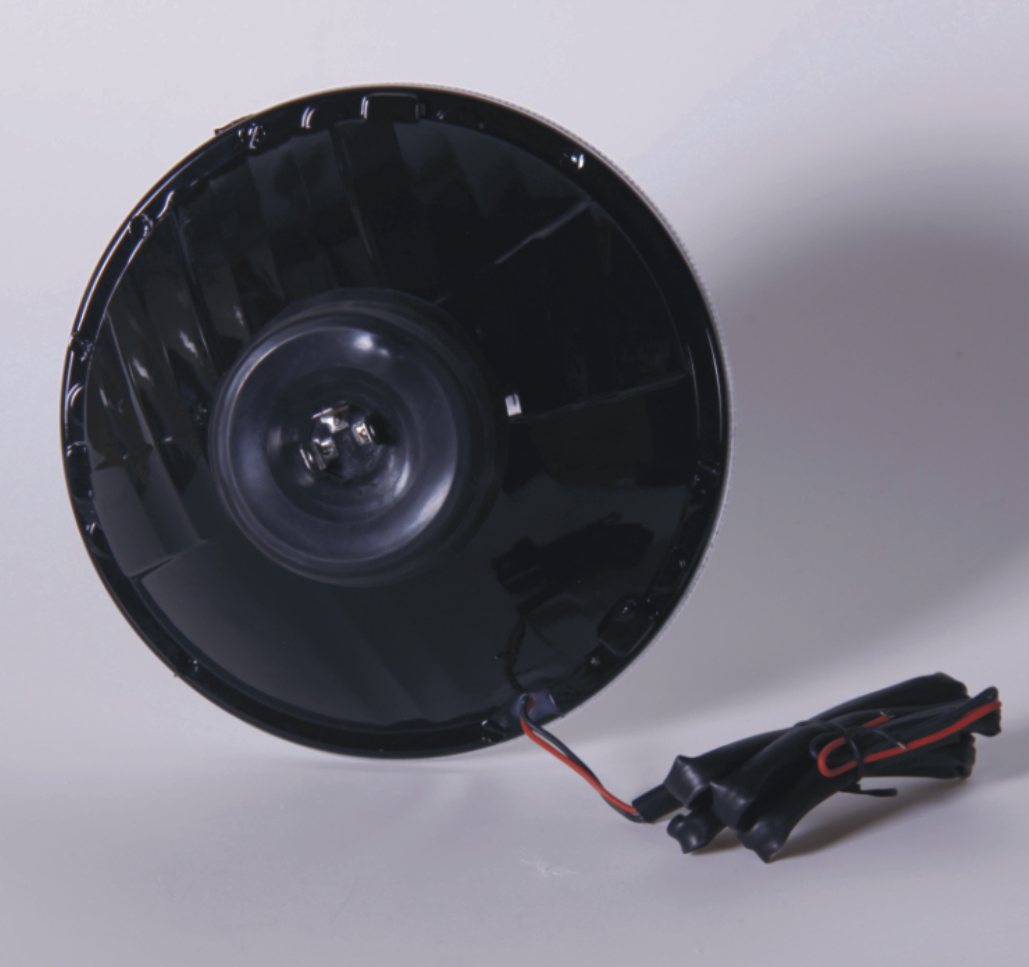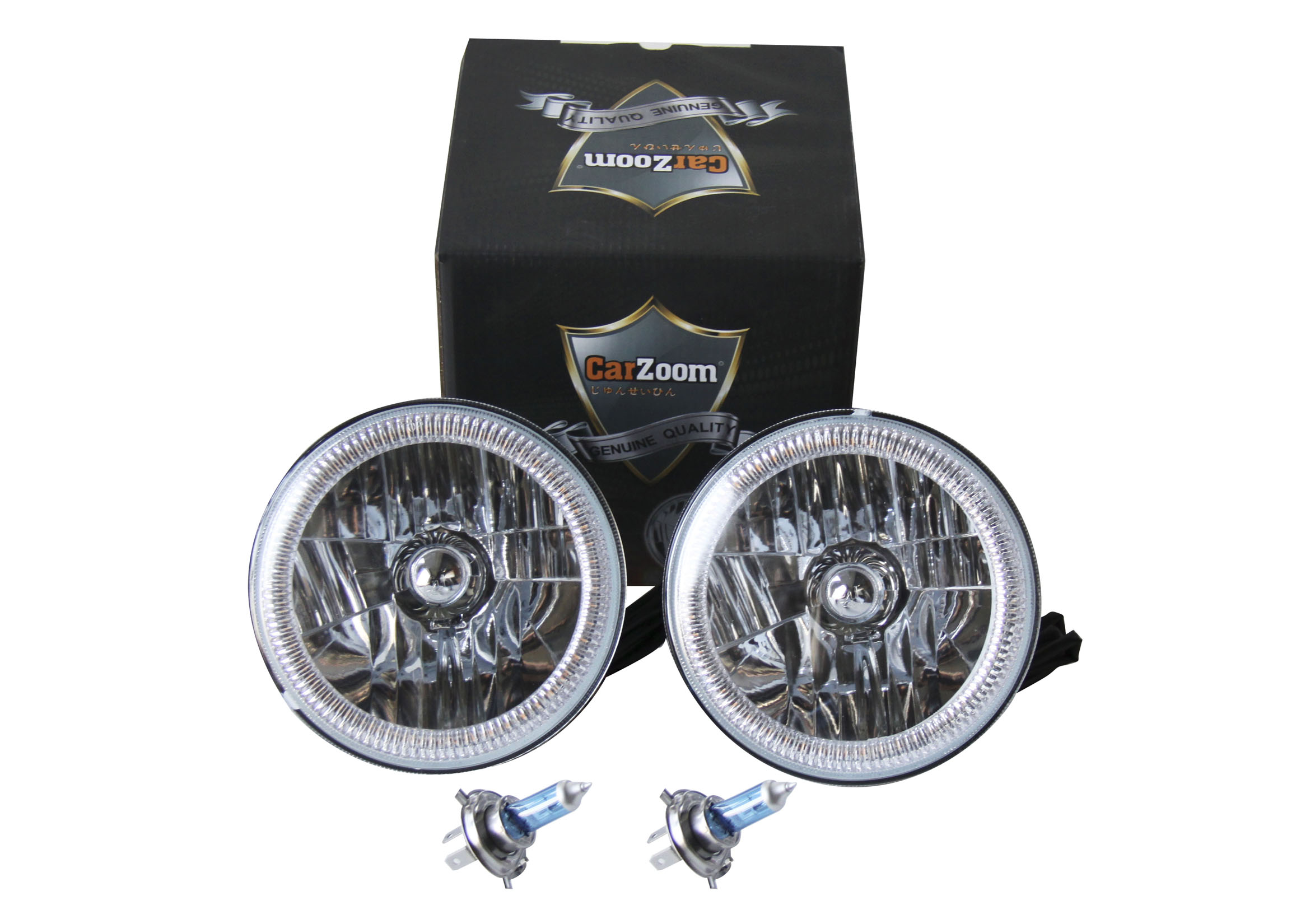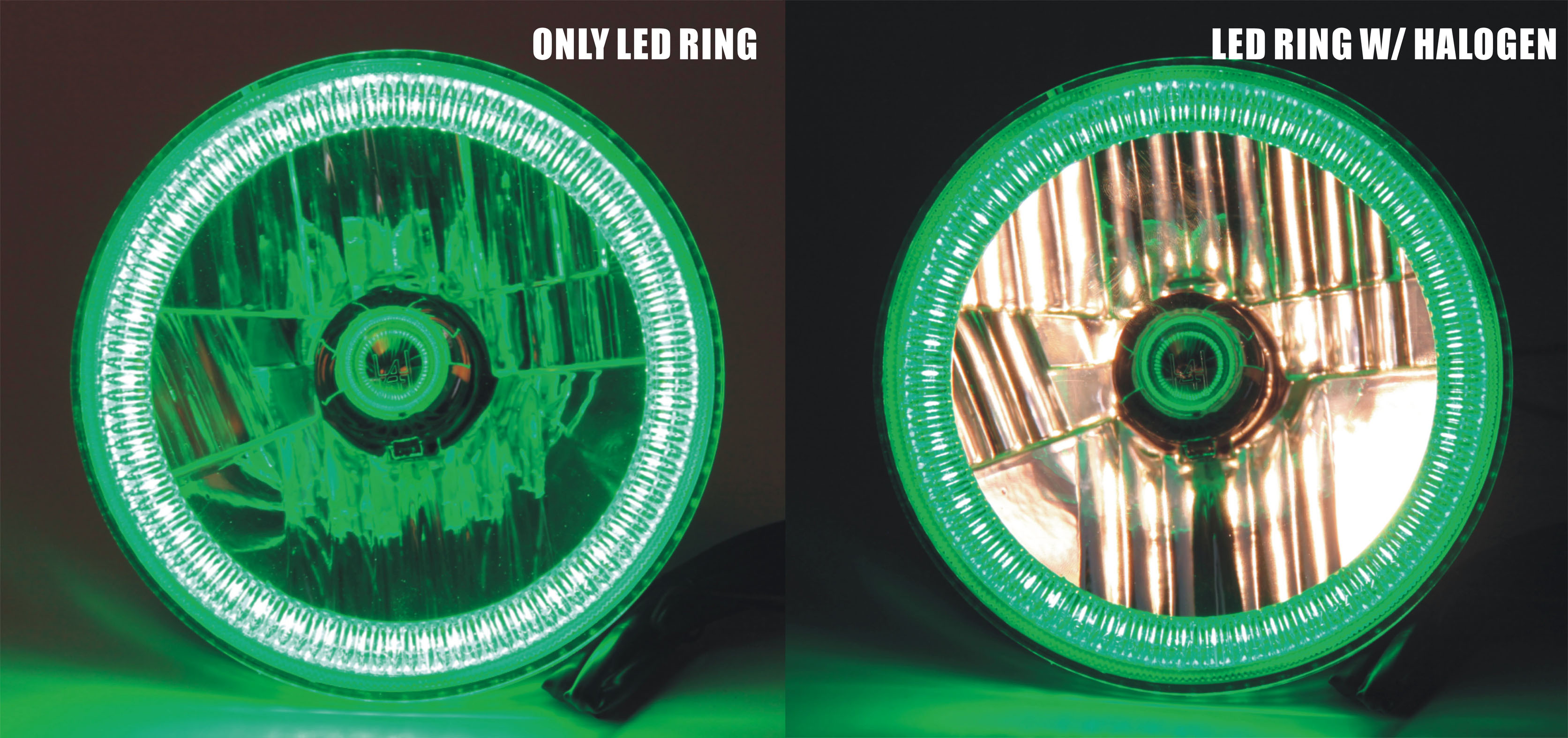 CARZOOM CZ-7R218G Black 7" Round Plastic H4 Halogen Headlight with Reflector - Pair (Green SMD Ring)