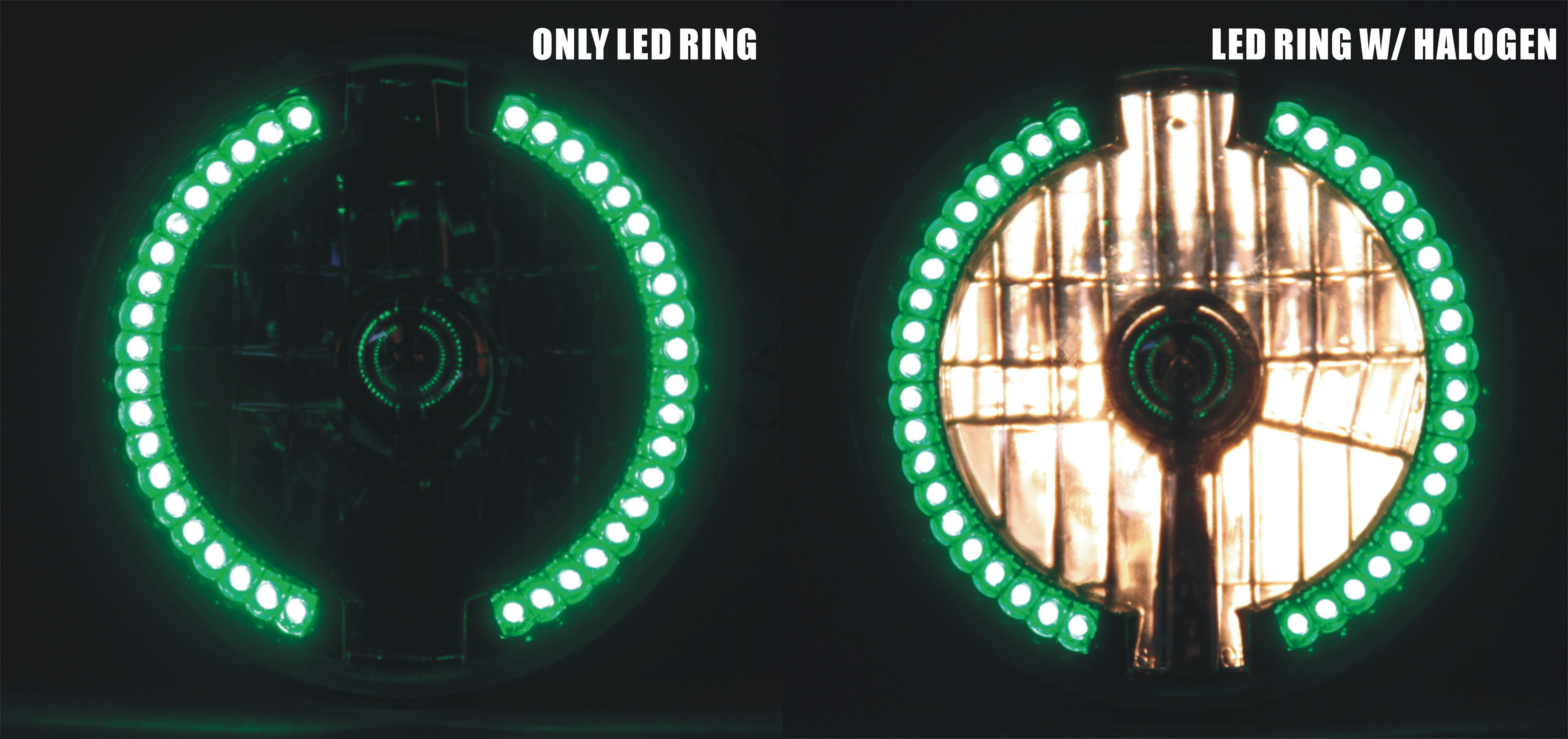 CARZOOM CZ-7R232G Black 7" Round Plastic H4 Halogen Headlight with Reflector - Pair (Green Half Split LED)