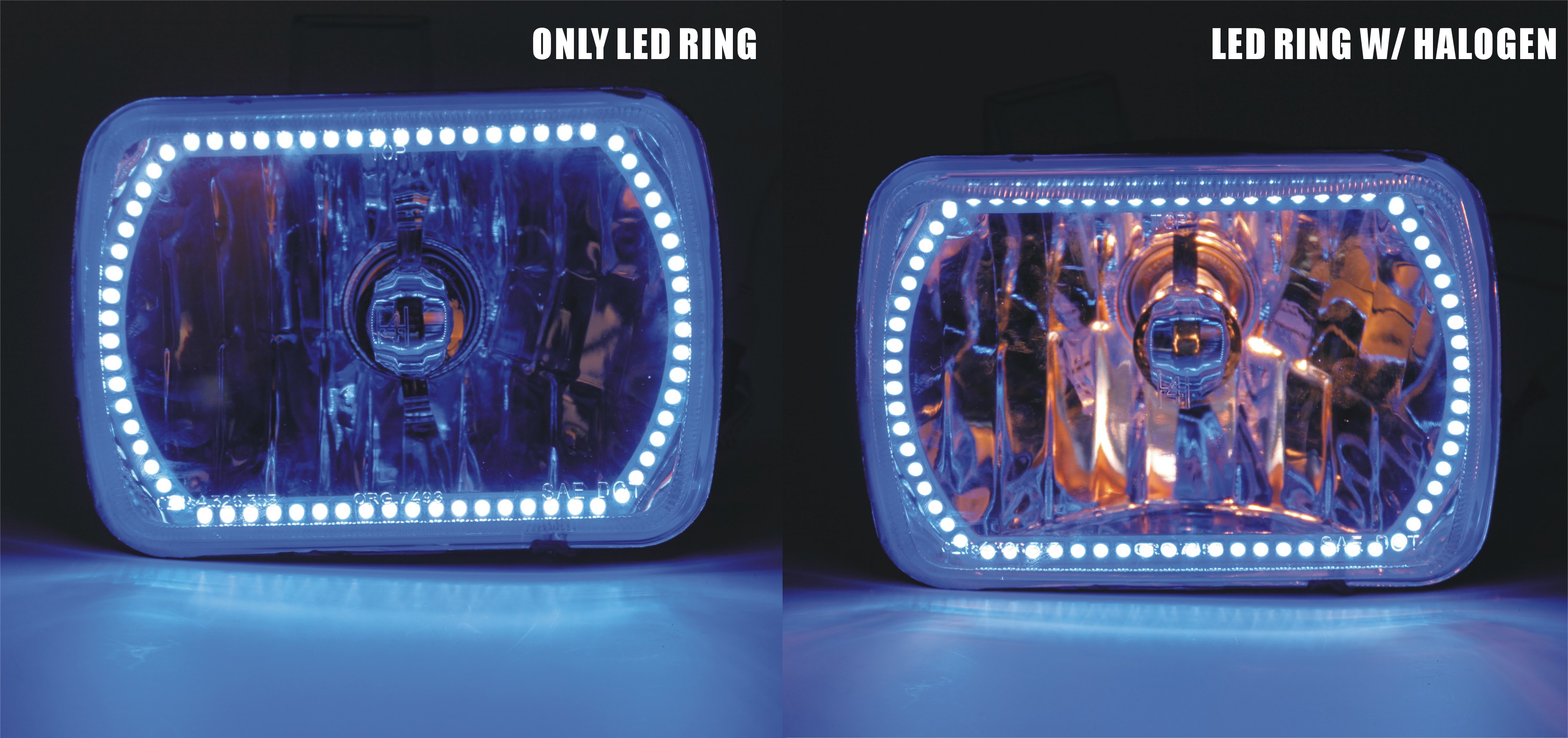 CARZOOM CZ-7S406B Brown 7" x 6" Square Metal Stock H4 Halogen Headlight with Reflector - Pair (Blue SMD Ring)