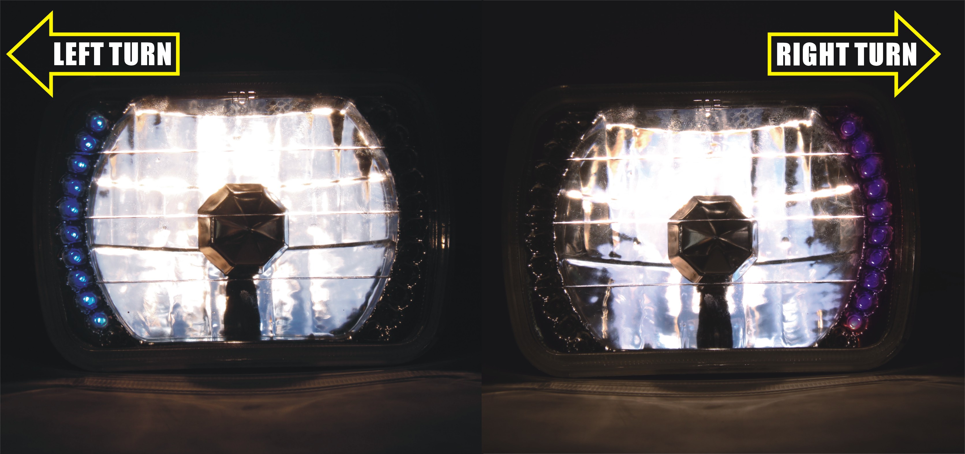 CARZOOM CZ-7S424B Black 7" x 6" Square Plastic BMC H4 Halogen Headlight with Reflector - Pair (Blue LED Ring)