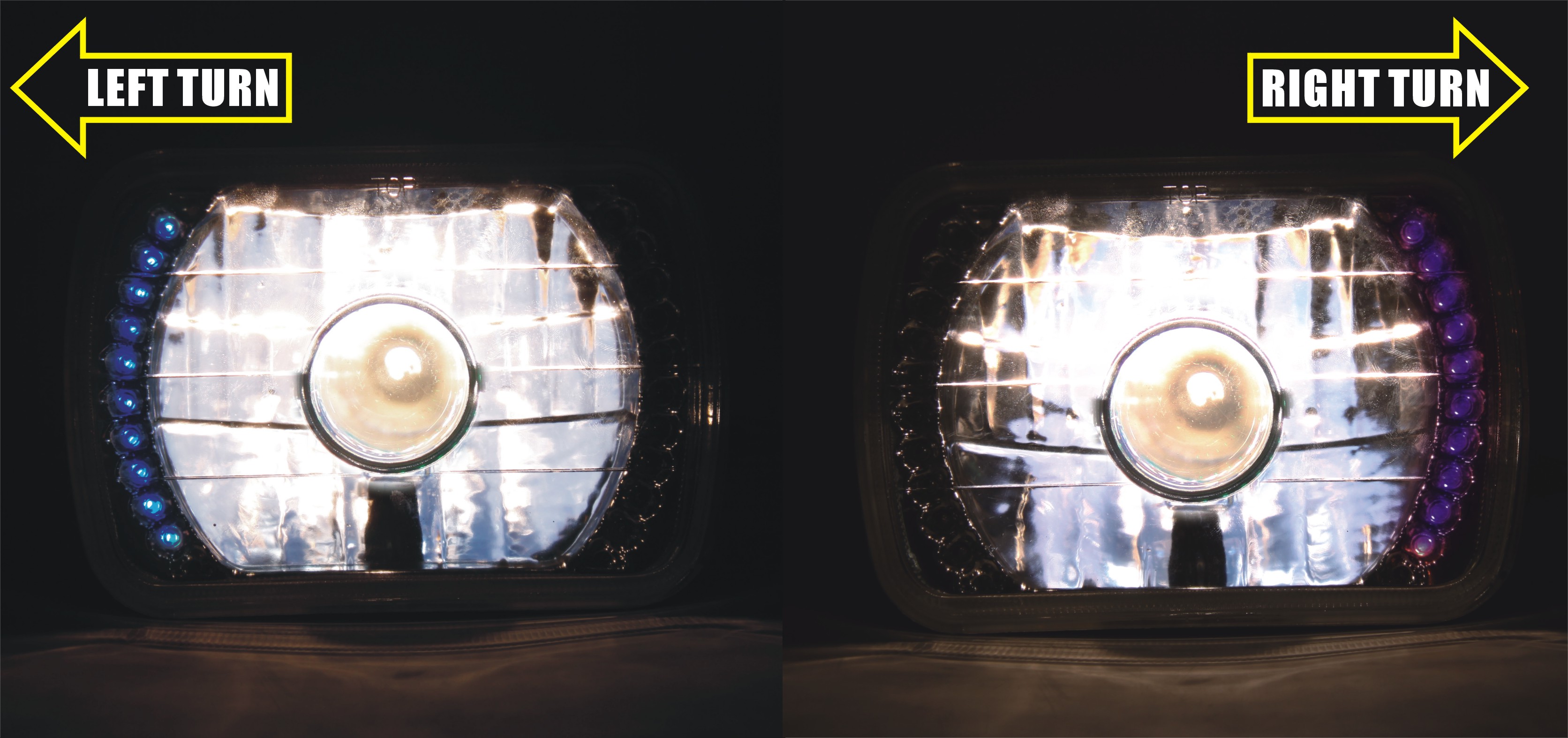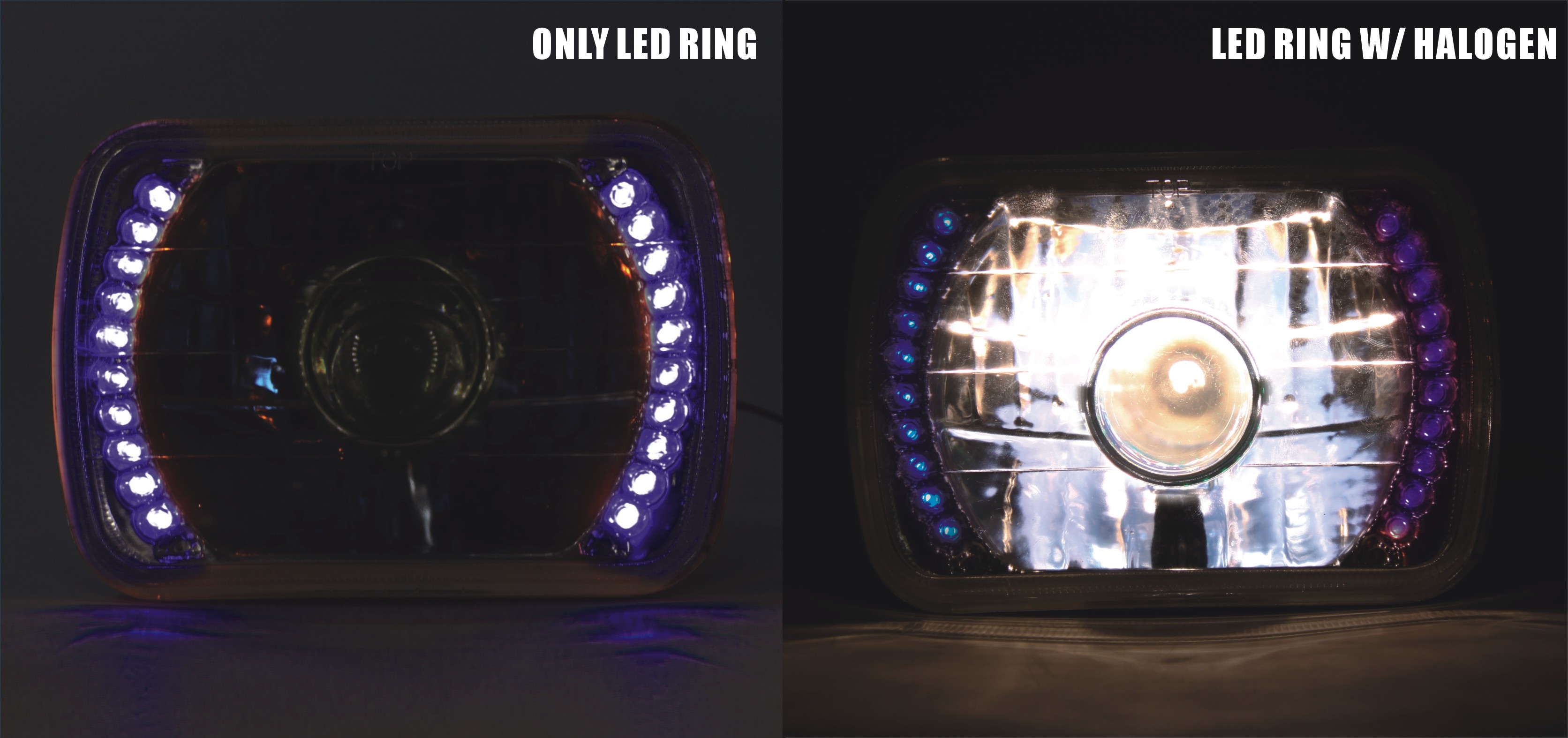 CARZOOM CZ-7S426B Black 7" x 6" Plastic BMC H4 Halogen Headlight with Projector - Pair (Blue LED)