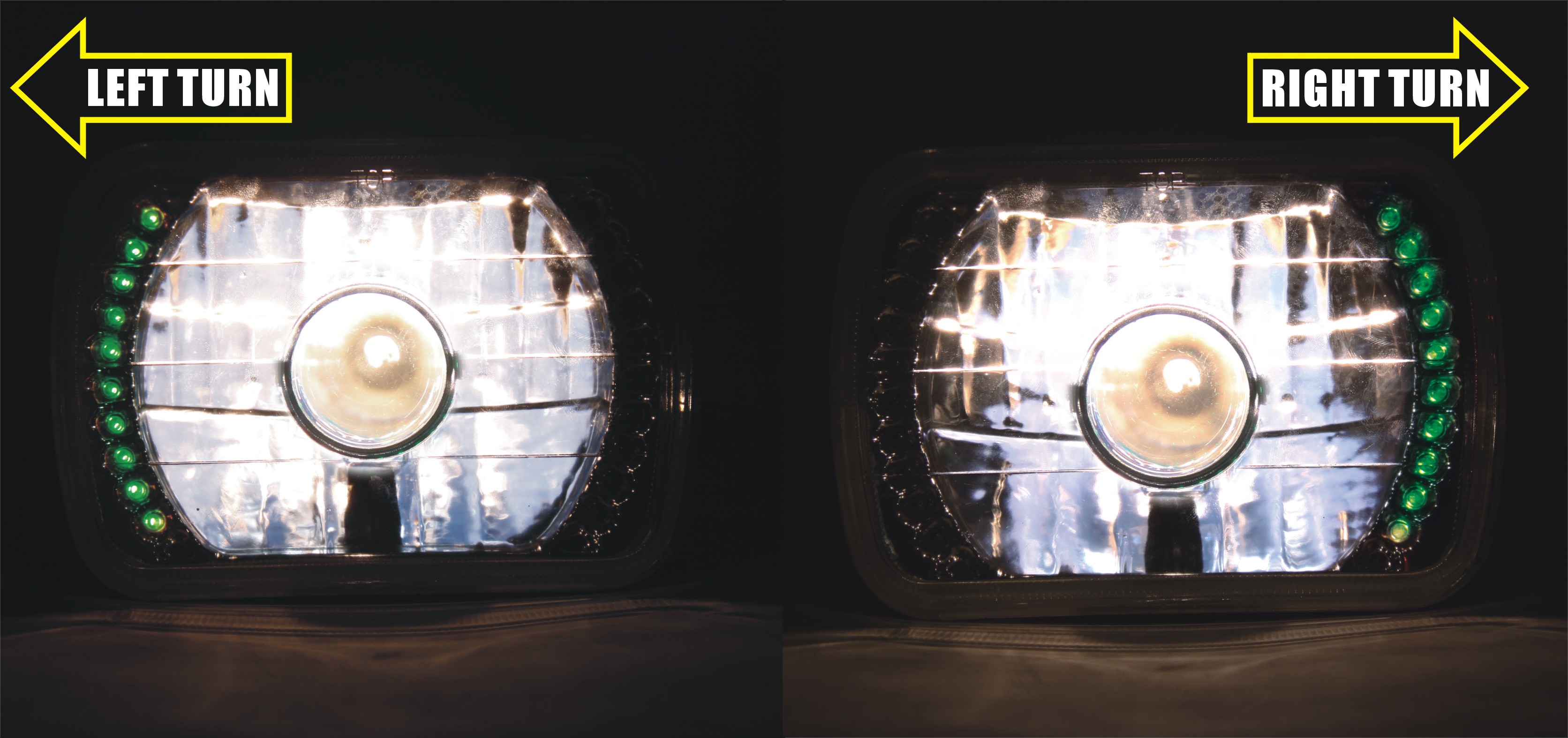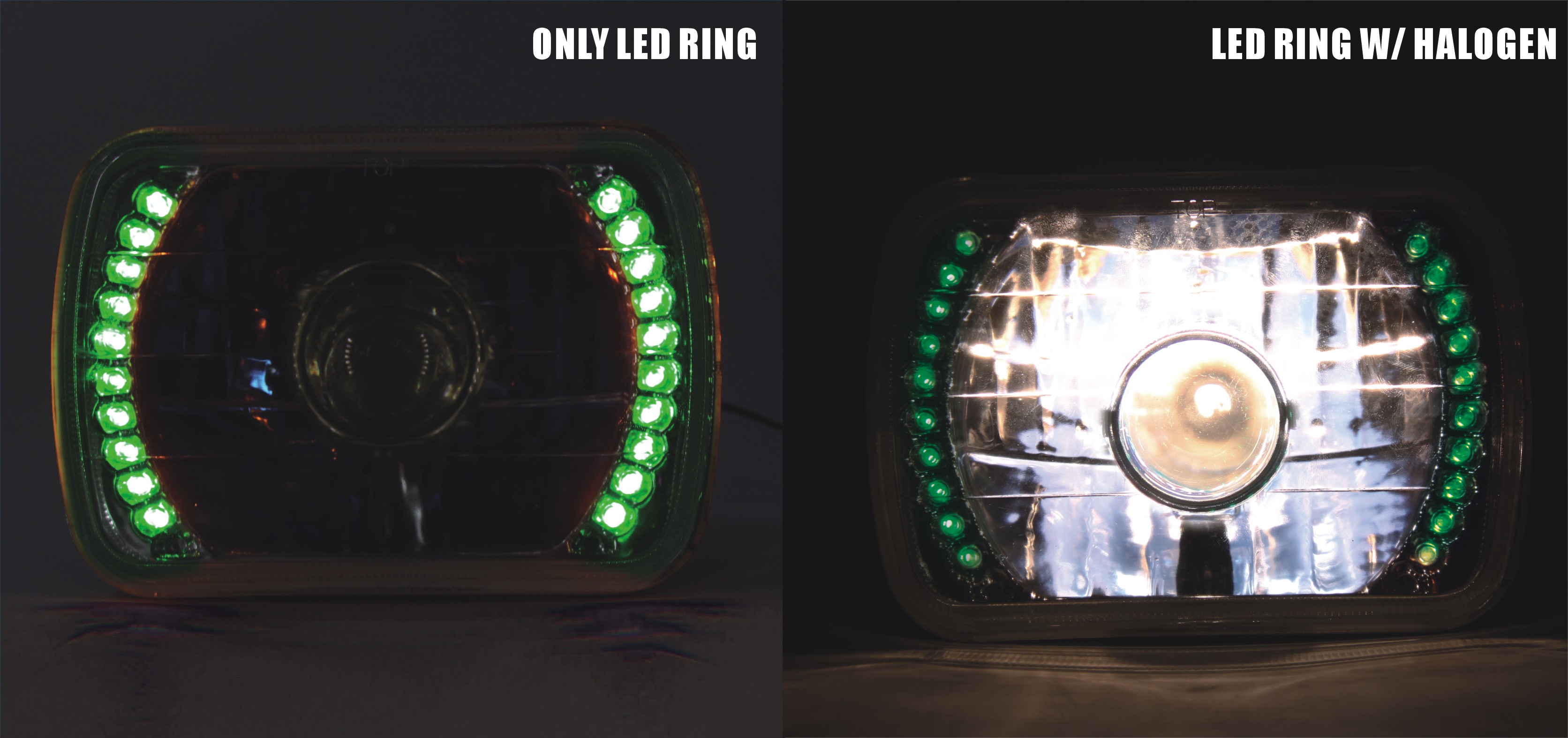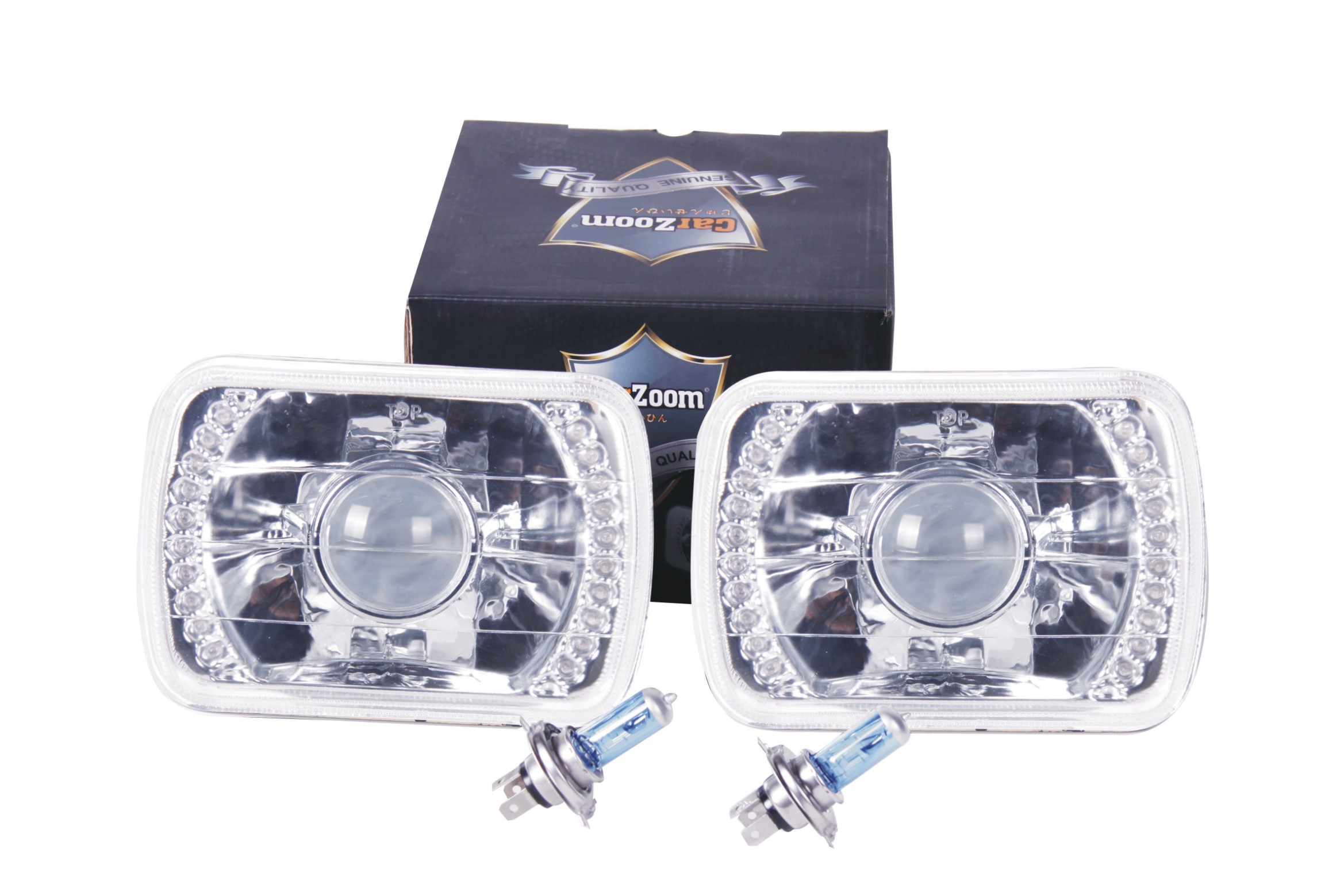 CARZOOM CZ-7S426G Black 7" x 6" Plastic BMC H4 Halogen Headlight with Projector - Pair (Green LED)